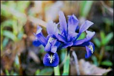 Early spring Iris, Iris reticulata, blooms in mid-February in Seattle, in early April in Finland, often when the soil is still frozen. It is one of the very first spring flowers.